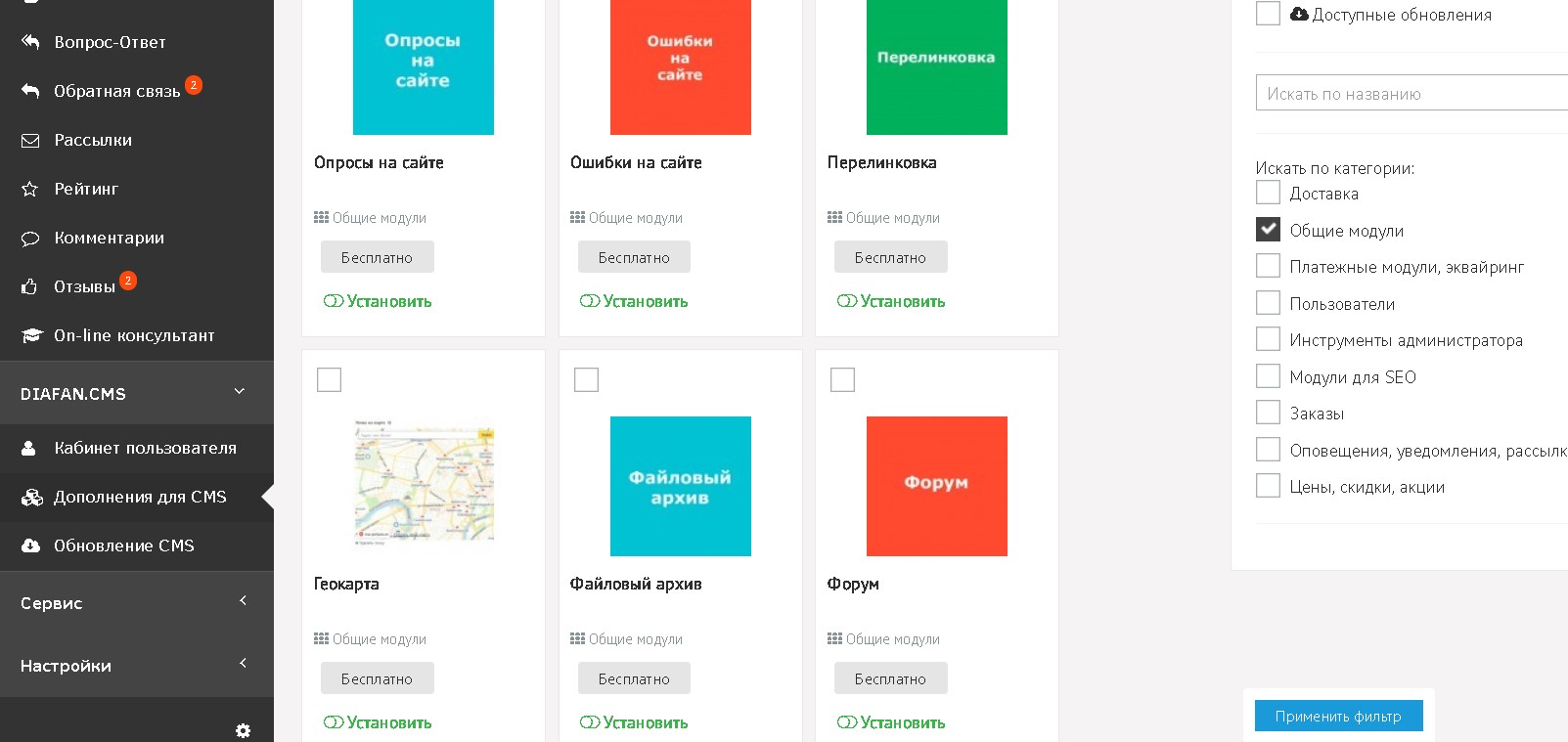 В данном руководстве познакомим вас с панелью управления DIAFAN.CMS